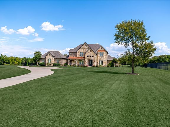 Nestled on nearly 13 acres in the highly sought-after Tanner Creek community of Sunnyvale, this one-of-a-kind custom estate offers over 5,500 sq. ft. of refined country living. Designed with both comfort and entertainment in mind, the home centers around a gourmet chef’s kitchen that seamlessly connects to the expansive living and dining areas, as well as a media room and game room—perfect spaces for family gatherings or casual entertaining. From these rooms, step out onto the oversized covered patio, complete with an outdoor kitchen, ideal for alfresco dining or game-day gatherings.. Step outside to take in serene backyard views from the oversized covered patio, complete with an outdoor kitchen, ideal for alfresco dining or game-day gatherings. The main level showcases a spacious owner’s suite alongside a guest bedroom with a private bath, plus a dedicated office off the entryway. Additional highlights on the first floor include a wine cellar and a fully vented storm shelter for peace of mind. Upstairs, you’ll find a large second living area with built-in dual desks, two guest bedrooms each with ensuite baths, and a flexible bonus room that can serve as an optional fifth bedroom. Every detail of this home was crafted for style and function, making it truly a rare find in Tanner Creek.