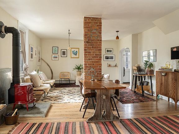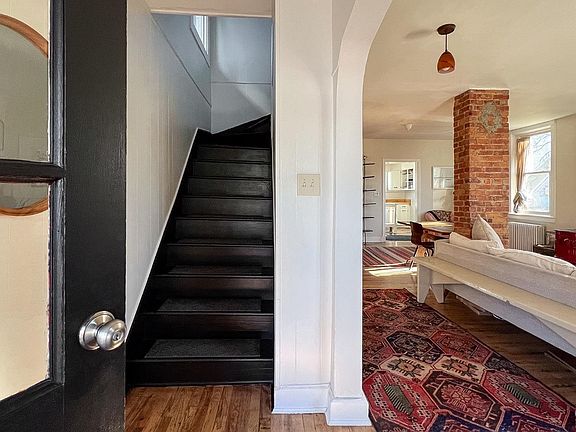 This 1920's Kingston home is full of light and a feeling of comfort. Wood floors throughout, original details blended in with tasteful updates, fresh paint on the inside and out. Elegant craftsmanship both new and old present in the whole home. From the front door you enter into a spacious living room with a Vermont Castings wood stove which keeps you nice and warm during the winter and fall months. A lower level bathroom for guests of the living room. Convenient and super functional kitchen space, great for morning coffee or chit chatting with friends and family. Head from the kitchen into the backyard which is newly landscaped with perennials and blooming trees and a great summer hang out spot. On the second floor you have a wonderful bathroom with clawfoot tub, beautiful tile work, and vintage sink. Across from two sun filled bedrooms, which can also work well as one bedroom plus studio or office. Come take a look now and be wonderfully surprised as all your lovely perennials come up this summer.