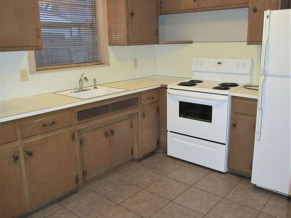 This clean 2 bedroom 1 bath apartment is all electric and very energy efficient It has a cute kitchen with refrigerator and stove that opens to the living room. There are tile floors throughout this unit. Both bedrooms are very similar in size and each has a built in dresser and desk area as well as a standard size closet. There is one full bath with a tub/shower combination. Each room has it's own baseboard electric heater with a separate thermostat for personal temperature control. There is a window unit in the living room and ceiling fans throughout. Off street parking is available. This property is located approximately 3 blocks south of SWOSU. Tenants pay electric and water. Owner maintains the yard.