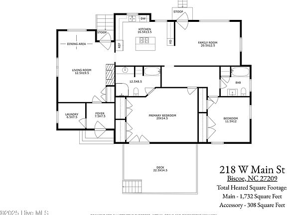 Adorable single-level ranch has numerous updates and improvements and is affordably priced!! Home has been well loved and cared for and shows in the improvements. Major updates completed in 2019 include a Metal Roof with LifeTime Warranty and new HVAC system & gutters, fresh paint, new lighting & new oven & refrigerator. The home also boasts new attractive durable LVP flooring in entry, laundry, kitchen and master bath. Beautiful refinished hardwood floors highlight the Living Room, Dining & Den, hallway and Master Bedroom! Open flow floorplan with spacious oversized rooms offers lots of flexible living space. Huge Master Bedroom has direct access to bath offering both walk-in shower plus separate tub/shower and also glass door leading to deck, backyard and detached garage. The detached garage also offers extra storage and workshop space PLUS a separate entrance for heated & cooled space. Multi-functional rooms currently serves as an office/business - but very flexible space used for numerous options! Located on oversized .68 acre corner lot in the heart of Biscoe, this charmer is conveniently located to food, health care and shopping and is only a short distance to I73. What a delightful find and great investment opportunity!