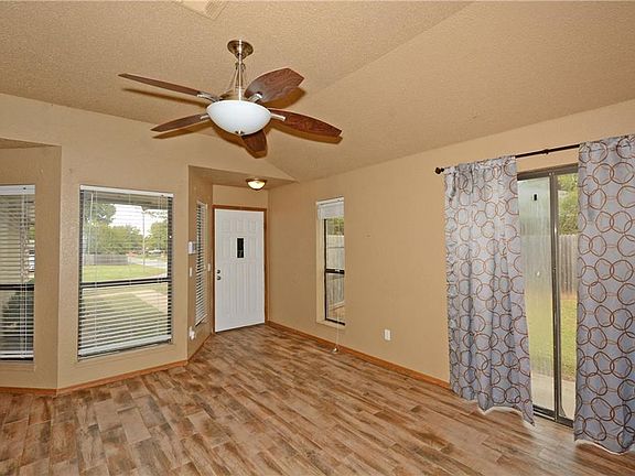 SUPER CUTE home with nice updates! 3 beds, 2 baths, 2 car garage, new wood plank TILE flooring in living/dining/hall/hall bath, both baths nicely updated, kitchen with updated appliances, great stainless gas range & microwave (2014), dishwasher (2013), disposal (2017), roof replaced 2010, HVAC & water heater (2008), brand NEW CARPET in all bedrooms! Good size lot with large 8-10 person STORM SHELTER installed in backyard! AWESOME location close to Hwy 152, shopping & restaurants! GREAT HOME at this price! Buyer to verify all school information.