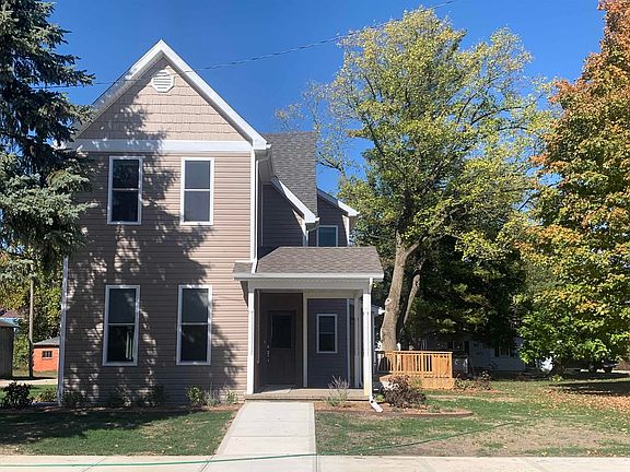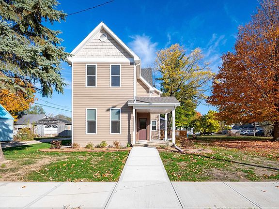 Move right into this beautifully renovated 4 bedroom, 2.5 bath home that combines modern updates with everyday comfort. Situated on a spacious double lot, this property offers plenty of room both inside and out. Features new flooring, windows, doors, exterior siding, roof, plumbing, electrical, HVAC, and insulation. Updated floor plan for better flow and functionality. Covered front porch and open side deck is perfect for relaxing or entertaining. Attached 2-car heated garage (24x24) with additional gravel parking. Main floor features spacious primary bedroom with double closet and a large private bath with a double sink vanity and walk-in shower. Modern kitchen with appliances included — washer & dryer too! Convenient half bath for guests. Upper level features 3 additional bedrooms, full bath and flex room for office, playroom, or hobby space. Easily accessible crawl/basement from kitchen with new floor, pea gravel, and sump pump installed. GFA heating/heat pump, water softener, new water heater, and 200-amp electrical service. This home is truly move-in ready, every major system has been updated for peace of mind and energy efficiency. Don’t miss your chance to own this beauty of a home with modern style and small town charm!