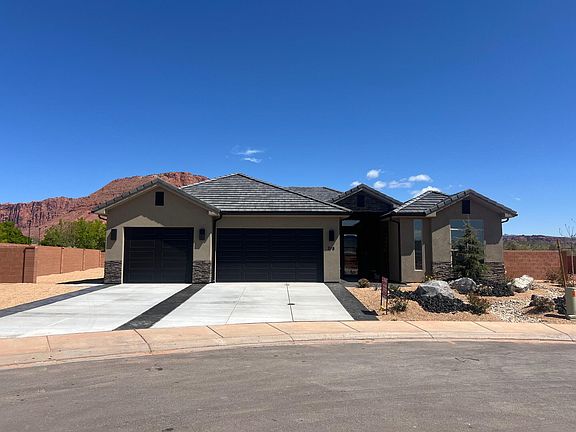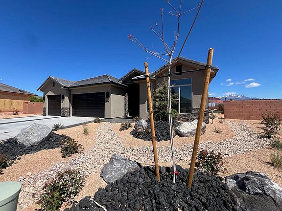 Located across from Unity Park, this home in Unity Village has a large lot and magnificent views of the Red Mountain. The floorplan is the ever popular S&S Homes, ''a home within a home:'' The attached casita includes a bedroom suite, separate living room, kitchenette, small laundry area, and private patio. The cabinets in the main kitchen are Majestic White. GE CAFE appliances are a highlight, and the home has quartz counters throughout. Close to trails, Tuacahn Amphitheatre, Snow Canyon, and Gunlock Reservoir.