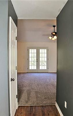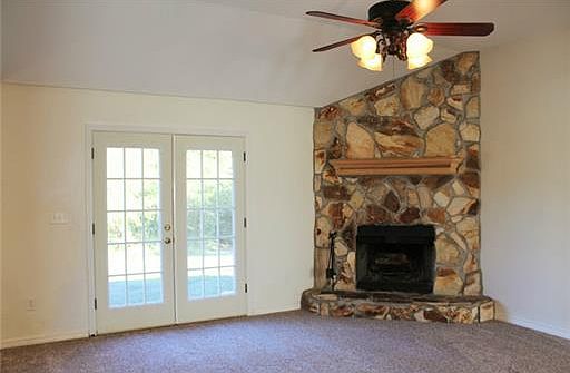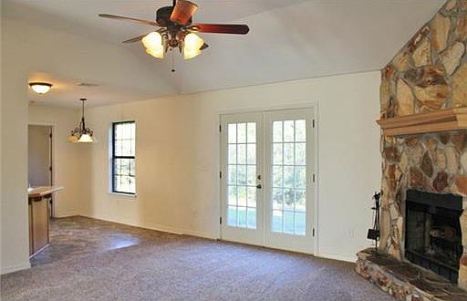 Nice- 3br/2ba with 1740sf on 9 acres. Features: fireplace, office, formal dining, all appliances stay, trey ceiling, walk-in closet, storage building, New pump, carpet & french doors. Rolling Land the back is high with natural springs.