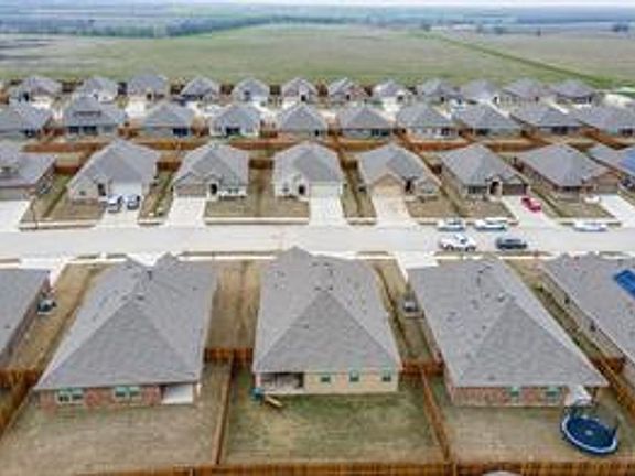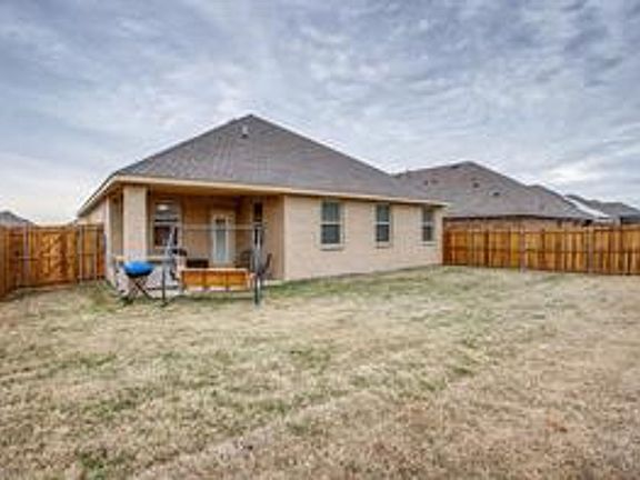 Beautiful and spacious single-story home with three bedrooms, two full baths, covered patio, luxury vinyl plank flooring, 5-panel doors, tankless water heater, Nest thermostat, and epoxied garage floor. Kitchen features a large island, white cabinets with undermount lighting, quartz countertops, and a gas stove. Primary bedroom retreat tucked away in back of house is spacious with ensuite having double sinks, large walk-in shower, and huge walk-in closet. Laundry room access from primary bedroom closet and hallway. Nice sized backyard and full sprinkler system. Community amenities include a pool, pond, and playground. Conveniently located between I-30 and Hwy 66. This house is ready for you to call it your home!