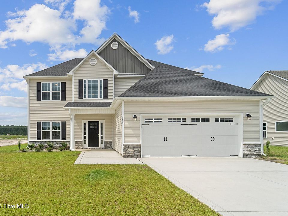 When convenience is everything, the location to live is The Vineyards! A Sydes Exclusive new construction community located inside the city limits of Jacksonville, left of River of Life Church, across from Lowe's Foods. Approx. 10 miles to Camp Lejeune, minutes from all area shopping and dining. Prime location. Natural gas. Welcome to the Palomar floor plan with approx. 2618 heated square feet. This beauty features 4 bedrooms and 2.5 bathrooms. A covered front porch welcomes you into a grand 2-story foyer magnified by tons of natural light. If you're looking for an open plan, then you will love this one! This gorgeous kitchen features beautifully staggered cabinets, stainless appliances, and an island that opens to a 13 x 13 keeping room with fireplace. Also open to the breakfast room. Truly a home to enjoy... it's time to eat, drink, and relax! The 18 x 16 family room also features a ceiling fan and fireplace. Main level also features a half bath. All bedrooms are located on the second floor. The spacious master bedroom is approx. 17 x 14 with a ceiling fan. The master bath is impressive with a double vanity topped with cultured marble and a custom mirror, separate tub and shower, and a 13 x 6 walk in closet. Bedrooms 2, 3 and 4 all have walk in closets and are prewired for ceiling fans. Laundry room is on the second floor. The covered back porch is a great space to read the morning paper or fire up your grill in the evening. This plan also includes a 2-car garage. Make an appointment today to view this beautiful floor plan! NOTE: Floor plan renderings are similar and solely representational. Measurements, elevations, and specs may vary in final construction. Limited selections for buyer to choose. Call L/A to verify.