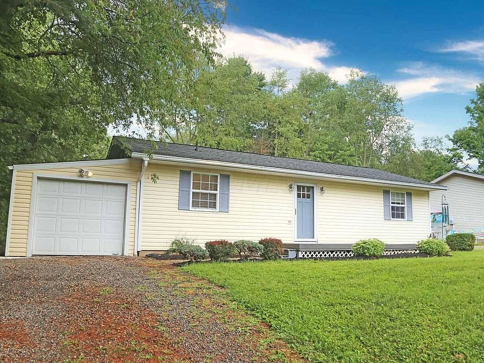 Cozy ranch home with a great fenced in back yard, features include 2-3 bedrooms and 1.5 baths, vaulted ceiling living room/dining room combination, adjoining oak cabinet filled with major appliances conveying, main level laundry with washer and dryer, primary bedroom with private half bath, front and rear decking, attached garage, forced air heating and cooling, priced to sell fast at $175,000.