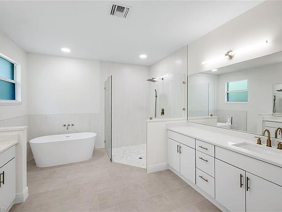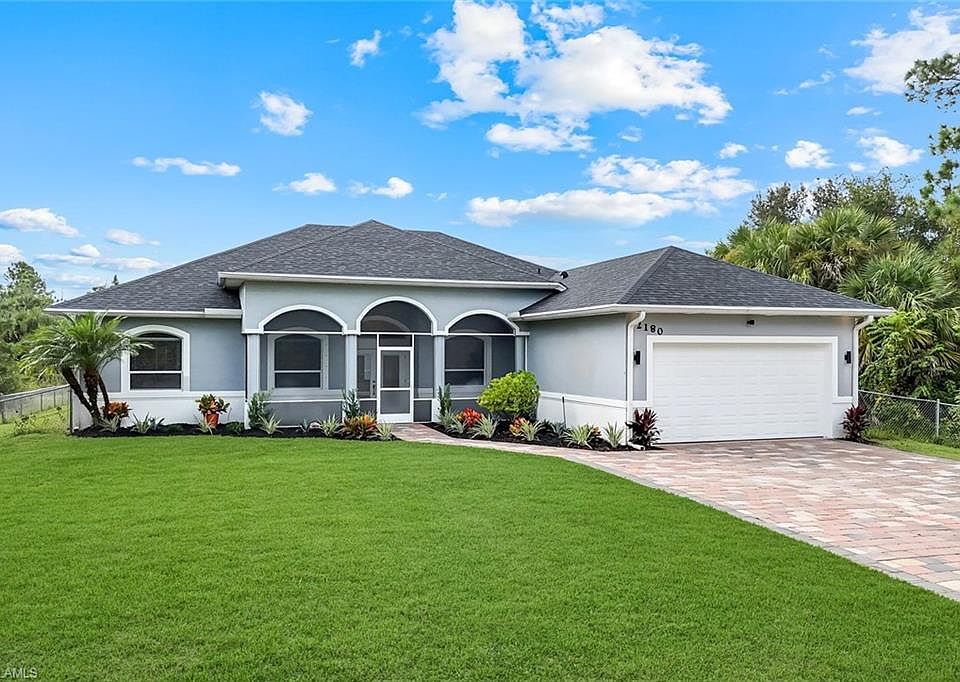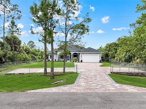 Welcome to this beautifully remodeled 3 Bedroom +Den, 3 Full Bathroom pool home with 2,486 sqft under air, which sits on a CLEARED 1-ACRE lot and did not only receive a full cosmetic upgrade but also had all major systems replaced in the last 2 years: NEW ROOF (2023), NEW A/C (2023), and a NEW WATER HEATER (2025). The open concept split-bedroom floor plan features a formal dining room, crown moulding, tray ceilings, elegant wainscoting, and a 13' entry ceiling. The master suite offers an oversized bedroom, his and hers closets, a soaker tub, and a large walk-in shower. The home has been fully updated with NEW TILE FLOORING THROUGHOUT, NEW REMODELED BATHROOMS, NEW COUNTERTOPS, NEW ELECTRICAL AND PLUMBING FIXTURES, NEW PAINT inside and out, NEW LANDSCAPING and NEW KITCHEN BACKSPLASH. To round it off the home features stainless steel appliances, window treatments, included washer and dryer and an epoxy garage floor. Outdoor living shines with 2,000+ SQFT OF SCREENED OUTDOOR SPACE increasing your total livable and usable space to a whopping 4,500+ SQFT including a HEATED SALTWATER POOL, SPA, CAGE, COVERED ROOF AREAS, and a screened-in front porch for morning coffees during cool winter months. The property also includes a 750+ SQFT WORKSHOP on slab, perfect for storage, workshop, man cave, or even conversion to an ADU, guest house or in-law suite. Additional features include a WHOLE HOUSE RO SYSTEM, TWO CARPORTS ideal for cars, boats, RVs, or trailers, a large PAVER DRIVEWAY, and FULL FENCE INCLUDING A PRIVATE GATE. The location is unbeatable—west of Everglades Blvd, south of Randall, and just around the corner from the new Vanderbilt Beach Road extension (Estimated Completion Spring 2026)—all with NO FLOODING OR WATER POOLING issues during storms. This home delivers the perfect blend of modern updates, functional space, and prime Naples acreage, without sacrificing location.