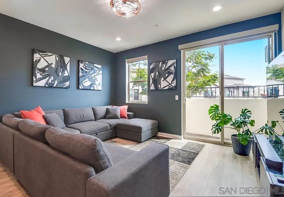 Stunning tri-level townhouse features 2 Beds, 2.5 baths, an office, and an open floor plan that seamlessly connects living, dining, and kitchen areas. Upgrades includes Paid Solar, Water Filtration for the entire house, white shaker cabinetry, the upgraded stainless steel appliances, oversize white quartz center island with large neutral vinyl planks through out and designer paint. Home includes a convenient 2-car side-by-side garage with Epoxy flooring, tankless water heater and modern finishes throughout. Perfectly located with easy freeway access, you'll be minutes from shopping centers, restaurants, and diverse dining options. Downtown San Diego, iconic landmarks like Balboa Park, and world-famous beaches including Mission Beach and La Jolla are all just 20 minutes away. Experience the best of San Diego living with modern comfort and unbeatable convenience to everything America's Finest City has to offer. Welcome Home.