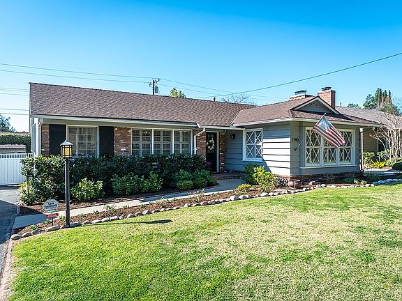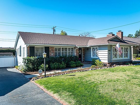 Discover this picture perfect classic Brigden Ranch home with picturesque paned windows and move in dreamy interior! This crisp home offers gleaming hardwood floors, a spacious living room with views of the San Gabriel Mountains, a fireplace for ambiance and warmth and wonderful white built in shelves for books and curios. There is a dining room off of the entry with a traditional chair rail and views of the mountains. The recently remodeled kitchen and breakfast area in that sought after kitchen blue hue with white trim will keep you cooking and entertaining! There is a separate laundry room with good storage. The 4 bedrooms are connected through a hallway with lots of wall hanging space and beautiful hardwood floors. The 4th bedroom could easily be used as an office, family room, guest bedroom or playroom for children and has an attached updated bathroom with exquisite classic tile & marble selections, The second updated bathroom is off the hallway with double sinks and is as tasteful and classic as this fabulous home. You will enjoy the high efficiency new central air and heat system, too. As you drive down at the end of the driveway through a vine covered arch there is a 2-car garage with abundant storage space. The back yard has productive fruit trees, a nice grass area & a raised porch. In spring, the white hydrangeas will burst with fluffy blossoms! You need to experience this fabulous Brigden Ranch classic!