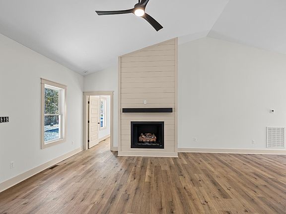 Peaceful wooded viewsOpen-concept floor planGranite countertopsStunning shiplap gas fireplaceBright kitchenVaulted ceilingsWalk-in closet
