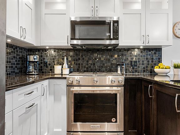 East-facing condo in Mahogany at Mill Lake! Enjoy breathtaking views of Mt. Baker and Mill Lake through floor-to-ceiling windows that flood the home with natural light. This 2-bedroom, 2-bath residence features geothermal heating and cooling, engineered hardwood flooring, heated tile bathroom floors, high-end fixtures, a gas fireplace, and a spa-inspired ensuite with a rain shower. Mahogany offers resort-style amenities including an indoor pool, hot tub, fitness centre, bistro, workshop, outdoor BBQ area, car wash, and 2 guest suites. Just steps to shopping, dining, and Abbotsford Regional Hospital, this home combines luxury living with unbeatable convenience.