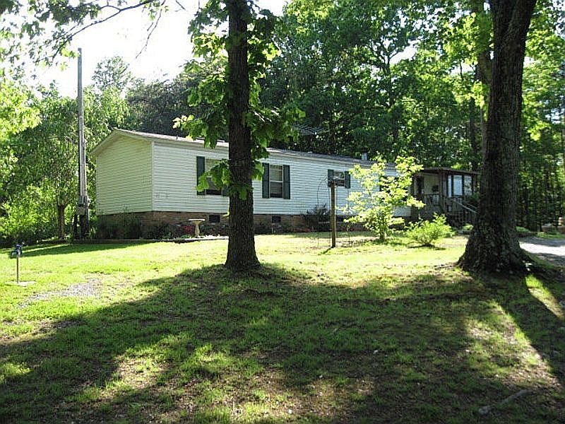 Garden landscaped 2 bedroom home with laminate flooring, eat-in kitchen & 2 full baths. Central air and gas heat. Home is situated on 10 acres+ of mixed hardwoods, pines and blooming peach trees. A stream is on the property. Large 4 car garage with power is ready for home business or hobbyist. Many other outbuildings on property. Move-in ready with washer & dryer.