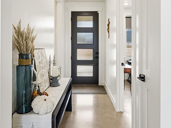 Brand new home, completed in 2025, located in the highly desirable The Bluff at South Mountain subdivision. This stunning 4-bedroom, 2-bath home offers 1,847 sq ft of beautifully designed living space on a spacious 0.27-acre lot. The impressive floor plan features a bright and open living area with large windows that fill the space with natural light and capture views. The living room includes a stylish fireplace framed by custom built-in shelves and cabinetry, providing both charm and extra storage. The kitchen offers a walk-in pantry with added counter space, perfect for extra appliances and organization. Adjacent to the kitchen is a convenient mudroom with built-in lockers area, plus a spacious laundry room with additional cabinets that connects directly to the walk-in master closet. The master suite is privately located on its own side of the home, featuring dual sinks, a separate soaking tub, and a fully tiled walk-in shower. The additional bedrooms are situated on the opposite side of the home, offering added privacy, and share a full bathroom with a beautifully tiled shower. Outside, the home features a 2-car garage plus an attached RV garage with a rear garage door that opens to the backyard - ideal for toys, trailers, and easy access. This beautifully crafted home combines modern comfort, functional design, and superior craftsmanship.