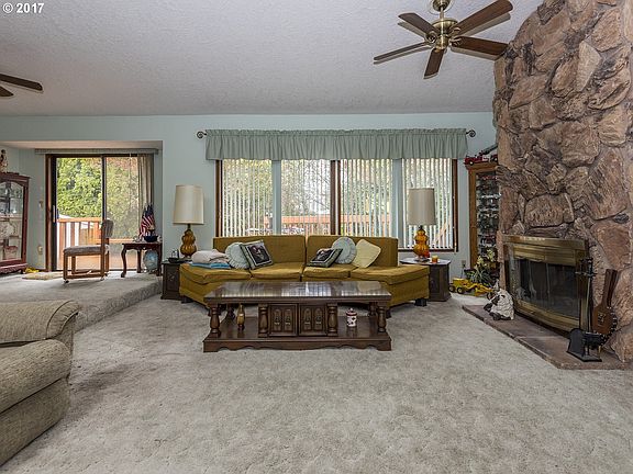 Desirable one level ranch with sunken living room. Floor to ceiling rock fireplace Nice and bright kitchen with eating area. Sliding glass doors to a huge patio deck. large lot with 2 storage sheds.