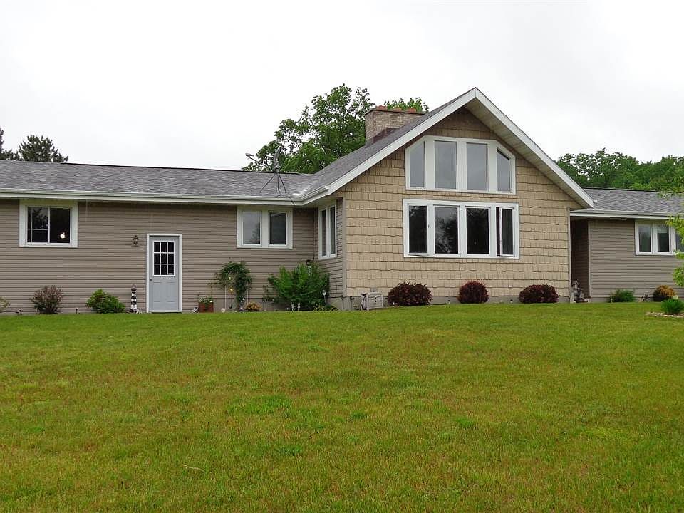 County living at an affordable price! Grand ceiling ranch home with two story double fireplace. Great room sizes, great natural lighting, full partially finished basement with walk out patio, plumbed for additional bath, great storage space. Main level laundry, trampoline and swingset can be included in offer, great outbuildings, great space. Call today for your private showing. Priced to sell!