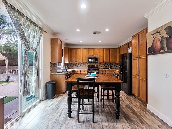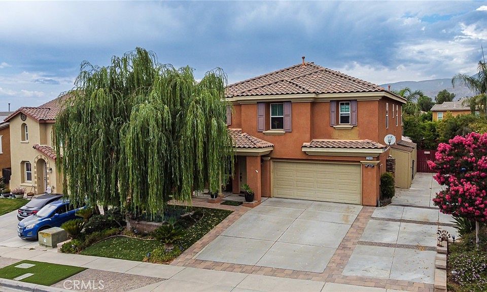 STUNNING MENTONE HOME – Located in a serene foothill neighborhood at the base of the San Bernardino National Forest, this unique property is ready for a family to call it home. Walking through the front door, you will immediately notice the custom upgrades and craftsmanship of work -- beautiful tile flooring, high ceilings, stone fireplace, crown molding, and a flowing floor plan that brings everything together. The kitchen includes wooden cabinetry with plenty of storage space, granite counter tops with full height tile back-splash, and stainless steel appliances. There is a downstairs bedroom and bathroom. Going up the mahogany staircase to the upstairs, you will find the other spacious bedrooms all featuring hardwood bamboo floors. The LARGE master bedroom feels like a suite, with an oversized walk in closet and its own private bathroom with shower and soaking tub. Furthermore, this home is perfect for entertaining -- enjoy your own private backyard oasis with lush mature landscaping and mountain views. Lastly, the property also includes a 2-car garage and RV parking on the side of the house. This one is turn key and ready to move in. Take advantage of this rare opportunity and make this custom home yours TODAY!!!