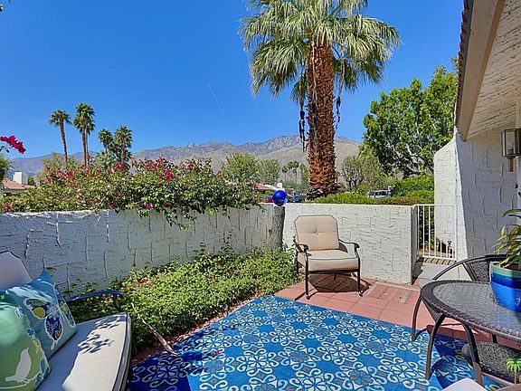 Cheery, bright and FUN!!! This 3bd/2ba condo was taken down to the studs with new plumbing, electrical and windows in 2009 and underwent a $75,000 renovation using custom materials. The upgraded kitchen comes complete with vintage "Big Chill" appliances and a huge custom-built pantry. The bathrooms boast new tile and custom vanities. This home is situated only steps from one of four pools in the complex and reveals wonderful mountain views from the main living area. The front patio is perfect for morning coffee while enjoying your mountain vista, and the rear patio runs the length of the home and is ideal for relaxing with a cocktail in the evening. Centrally located in Palm Springs this home is ready for your enjoyment!!!