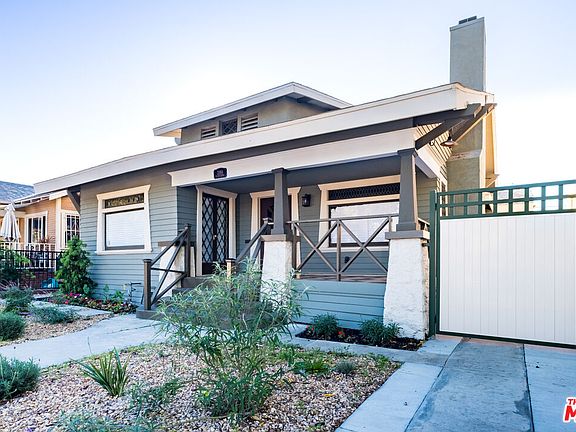 Step back in time to 1909 Los Angeles, when the city was rapidly transforming from a western outpost into a thriving metropolis. Streetcars stretched across new boulevards, early film studios were taking shape, and new residents sought beautifully crafted homes along expanding transit lines. Built during this dynamic era, this classic Craftsman home in Jefferson Park reflects the architectural ideals that defined early 20th-century Southern California living: simplicity, artistry, and a seamless connection to nature. The home features a welcoming front porch beneath a low-pitched gabled roof, an iconic Craftsman hallmark, supported by tapered columns on sturdy masonry bases. Wide eaves with exposed rafter tails, wood siding, and grouped multi-pane windows highlight the period's commitment to hand-crafted detail. Inside, beautifully restored original woodwork, a decorative fireplace, built-in cabinetry with leaded stained glass and coffered ceilings, lend the living and dining rooms a warm, timeless elegance. The gourmet kitchen invites gatherings around a quartzite island as the home chef moves and grooves between top-of-the-line appliances. Every detail was considered from illuminated shelving and appliance garages to the farm-style sink, pot filler, pantry shelving, and abundant storage. Custom white oak cabinetry gives the space a comfortable, airy sophistication. When it's time to unwind, follow the wainscoted hallway to a serene bedroom retreat featuring a dream walk-in closet, thoughtful lighting, and a spa-like bathroom with a dual vanity, oversized shower, and standalone tub accented by gold fixtures and a gleaming chandelier. Two additional bedrooms complement the home, along with a stylish guest bathroom located in the mudroom/laundry area with access to the low-maintenance backyard. A detached bonus structure, once likely a carriage house, now serves as a versatile office or studio with finished walls and recessed lighting. The property is fenced with gated parking for multiple vehicles, plus a driveway space. Modern upgrades include solar panels, a tankless water heater, central air and heat, a pull-down attic staircase, and a classic California basement. This 1909 Craftsman not only offers exquisite design and modern comfort but stands as a living piece of Los Angeles history...built at a pivotal moment when Jefferson Park was helping shape the city's early identity and architectural legacy.