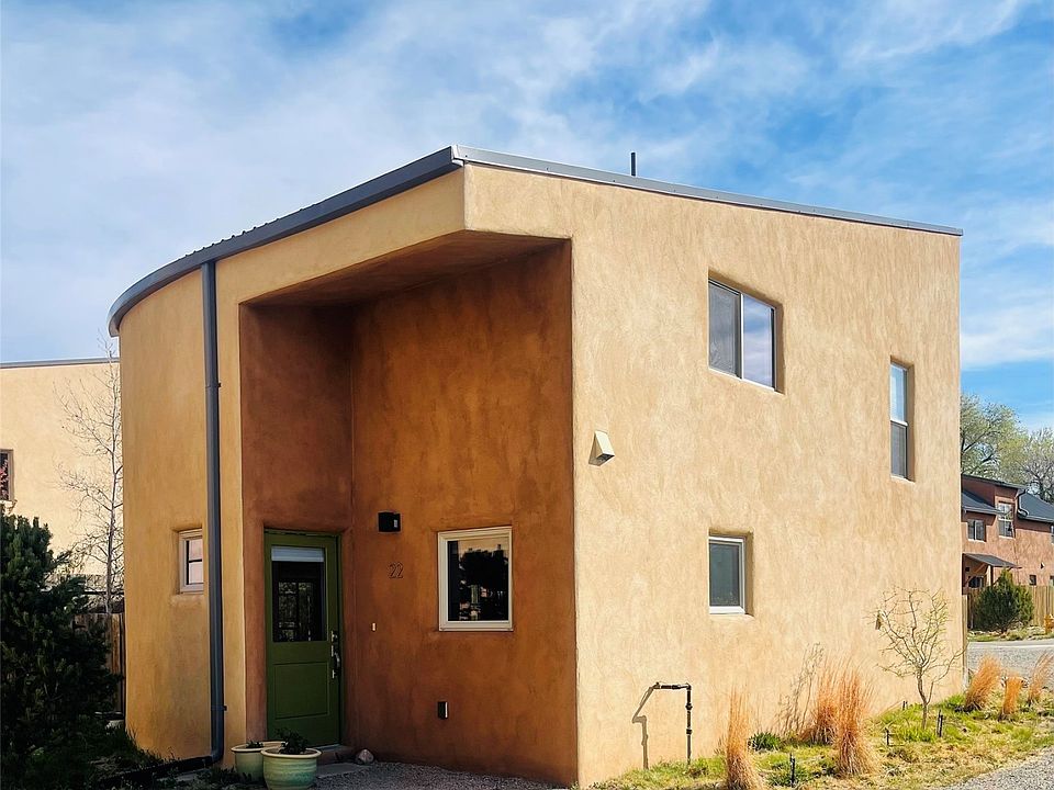 This beautiful two bedroom and two full bathroom, condo has a spacious open floor plan, lovely natural light, high ceilings and a loft space upstairs. The kitchen features gorgeous granite countertops, stainless steel appliances, a gas range, soft close cabinets, and plenty of space. The full bathrooms also have beautiful granite countertops. The lovely and stylish polished concrete flooring has radiant heat. There are perfectly placed, energy efficient windows in the home that create a bright and airy feeling. The modern, yet comfortable vibe radiates throughout the house. This energy efficient, freestanding condo has nice floor plan separation - with one bedroom, one bathroom, a great room, kitchen and laundry area on the first floor, and one bedroom, one bathroom and a spacious loft upstairs. There is a nice fenced-in yard that allows for outdoor enjoyment and entertaining. The location is minutes from historic downtown Santa Fe, restaurants, shopping, and is an easy commute to Albuquerque or Los Alamos. River Trail Lofts border the Santa Fe River and have access to hiking, biking, running trails, and so much more.
