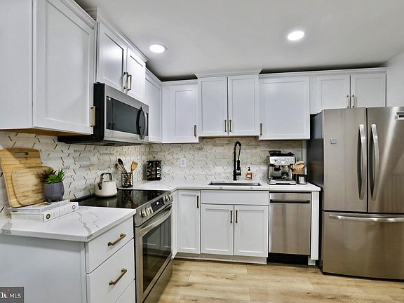 New lvpElegant quartz countertopsCompletely renovated finished basementCrisp white cabinetsLower level patioEnd unit townhomeCozy front porch