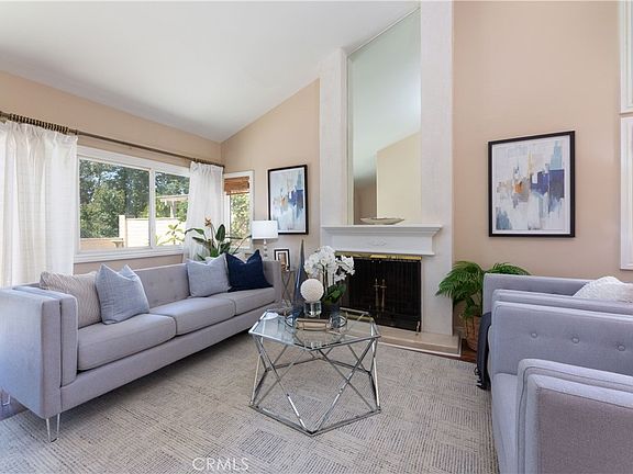 Welcome to this beautifully remodeled single-story home in the desirable Lake Forest II community! As you enter this charming 2-bedroom, 2-bath home enjoy the open, airy feel of the home with vaulted ceilings and lots of windows allowing tons of natural light. The living room is situated with a tall fireplace, vaulted ceilings, and a sliding glass door that lead to the tranquil backyard. This home has an optional den that could easily be converted into a 3rd bedroom. This home offers modern upgrades, like recessed lighting, smooth ceilings, stone and wood flooring, dual pane windows, newer doors, mirrored closet doors, fresh paint, beautiful stone, air conditioning, Skylights, and high-end fixtures throughout the home that make this home move-in ready. The fully remodeled kitchen features sleek granite countertops, new stainless steel appliances, custom wood cabinetry, a bar height countertop, and a butler's quarters with a microwave and plenty of storage. The dining room has ample space with a large table for ample guests, with a large pantry. The spacious primary suite boasts a private sitting area, walk-in closet, dual sinks, and ample cabinet space. As you step outside to the low-maintenance landscaping you'll be greeted with tropical scenery including plumeria and hibiscus trees, a lemon tree, and patio areas to relax in the peaceful surroundings. The attached two-car garage provides convenience and extra storage with washer and dryer hookups. Located just a short distance from the Lake Forest II Sun and Sail Club, enjoy access to incredible amenities like the lake, swimming pools, fitness center, clubhouse, sports courts, and more. This home is close to top-rated schools, shopping, and nature trails, offering both comfort and convenience.