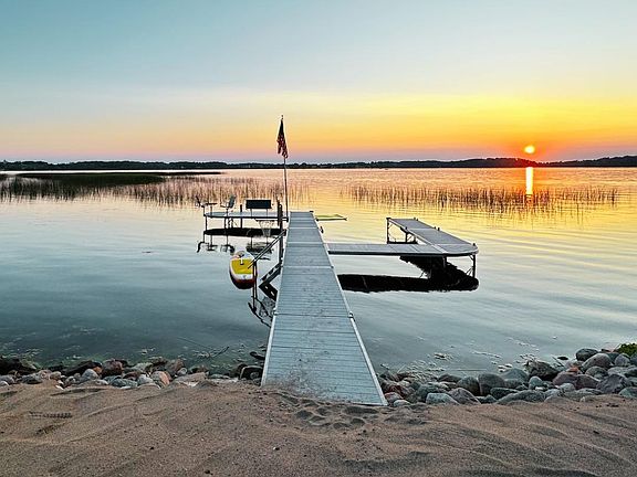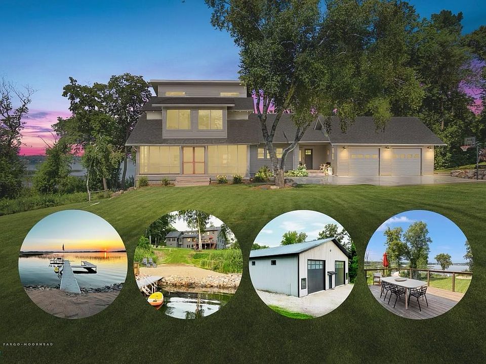 This is your permission to imagine yourself in a boutique Jewett Lake farm property with 140 ft of sandy lake shore near Fergus Falls, MN-one that could be uniquely yours. We invite you to audibly gasp at the new 50x80 shop with high ceilings, 16 foot garage doors, and radiant floor heat already plumbed. The private back yard is the perfect size, no matter your needs, be it a quaint dinner on the 22 x 17 deck or fireside s’mores with the family in the sand. Perhaps even better, you'll likely want to get out for an evening pontoon stroll around the lake-the neighborhood is warm and welcoming and you can expect a wave or two. 4 of the 5 bedrooms in the home are ensuites- yes please! for privacy and comfort. The main living & kitchen space opens to high vaulted ceilings and large windows facing west that showcase stunning views of the lake. Additional perks include: unique stone barn, a chicken coop, a stone historic structure, dock, and a paved driveway. Now then, book a showing today!