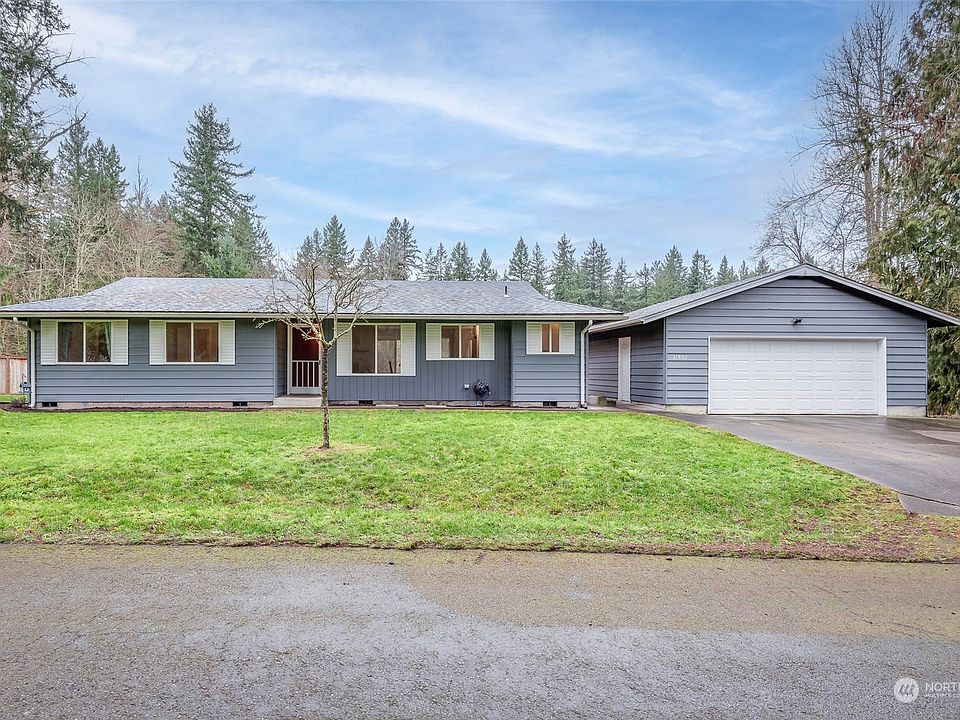 This classic charm rambler was remodeled in 2019 w/ modern upgrades such as updated kitchen, bathrooms, fixtures, carpet, laminate flooring, water heater & more! Kitchen features gorgeous granite counters, subway tile backsplash, SS appliances, recessed lighting & kitchen sink reverse osmosis. Living area is accented by the large white brick fireplace w/ contrasting dark wood mantle. Discover your private oasis w/ large windows connecting you to serene views of nature extended by no back neighbors! Move-in ready upgrades continue w/ fresh landscaping & interior paint, water filtration system, new gutters & brand new 30-year roof(Oct 23) w/ transferable warranty! The gated community of Clearwood offers trails, pool, and 3 private lakes!