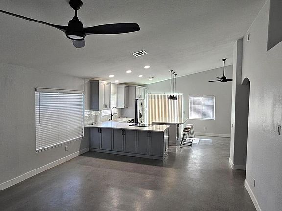 Welcome Home! This home features several updates including Quartz countertops and cabinets throughout the home. Stained concrete flooring and neutral paint. Spacious backyard with no neighbors behind. New A/C and Air handler in 2023. The garage has tons of storage. Includes washer and dryer. Corner lot!