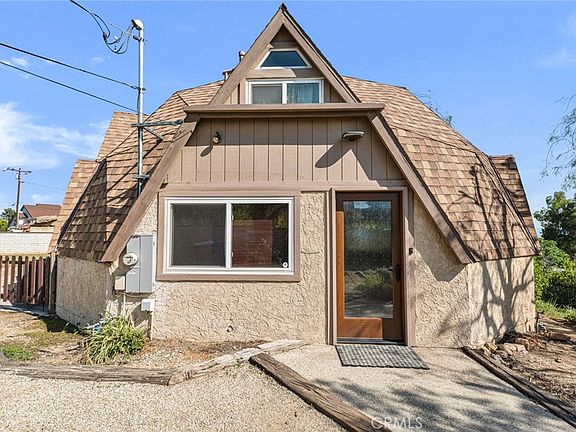 Stunning 2 bed, 2 bath, geodesic home on generous 1/3-of-an-acre lot in a prime Chatsworth neighborhood. Enjoy spectacular views of the Santa Susana Mountains and Stoney Point as you live, play, or simply relax in this uniquely designed space. All fresh interior paint and all electric appliances complement a geodesic dome design that is distinctive, energy-efficient, durable, and cost-effective. Draw inspiration from the soaring ceilings, the distinctive planes and angles of the geodesic dome, and abundant light throughout. The open space on the ground floor has plenty of room for separate sitting and dining areas or treat it as a generous “great room” ideal for entertaining. The adjacent kitchen features an electric oven and range, built-in microwave, dishwasher and included refrigerator. Also on the main level, a beautiful, full, tiled bath is accessed both from a short hallway, and en-suite from the downstairs bedroom. The spacious bedroom embraces the curvature of the walls to great effect with multiple windows and a built-in wardrobe. Upstairs, discover a lovely, bright loft with a deep-set triangular window -- a perfect spot for a study or home office. From the loft, access the ¾ bath and additional bedroom, which takes full advantage of the distinctive architecture with pitched ceilings and triangular windows, creating yet another comfortable and distinctive space. Additional features include newer dual-pane windows, electric heat pump, and laundry facilities with hookups for stackable washer and dryer. The home is set on an over 15,000 sq ft lot and is fully gated with motorized entry at the drive. Ample parking is available in the gravel forecourt, and there is also a storage shed on the property. As an added plus, the generous street-to-street lot presents an ideal opportunity for a possible ADU. Like the house itself, a small deck off the back door, the wide lawn and planted garden area all enjoy lovely mountain views. Zooming out, the location offers a myriad of possibilities for recreation, enjoyment, or enhancement: well-situated near local parks, hiking and biking trails, and natural spaces, and within easy proximity of the 118 freeway and Topanga Canyon Blvd. to get you anywhere you need to go. Don’t miss this opportunity to call this one-of-a-kind architectural gem your new home!