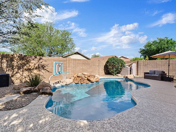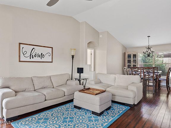 Adjacent to Desert Ridge and close to Loop 101, this single-level home offers three bedrooms plus a den that easily functions as a fourth bedroom, two full bathrooms, and approximately 1,540 square feet of living space. Featuring updated interior paint and a 2024 primary bathroom remodel plus an open-concept layout, which includes a light filled kitchen, dining area, and living room with backyard views. The corner lot features a private pool and covered patio for outdoor living. The location provides convenient access to Desert Ridge Marketplace for shopping and dining, along with quick freeway connectivity and A+ top rated schools.