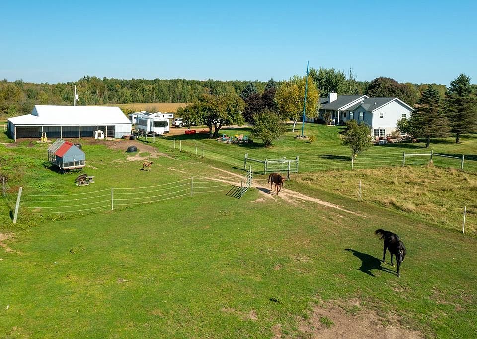 Country Retreat nestled on 16 Acres in desirable Marathon city area. Hard to find Ranch 4 Bedroom 3 Full Bath with Walk out Lower Level home, could be yours if you act fast! Home is situated towards the back of the property offering a very private setting with a horse barn and additional 3+ Car Garage and a trout steam running through it! (Burns Creek). Enjoy nights on your covered front porch watching exquisite sunsets or morning sunrises on your patio! Large open concept Living room (with Fireplace) dining room and kitchen! Kitchen has tons of storage and a kitchen Island! All kitchen appliances are newer and included in the sale. Down the hall you'll find a full bath (with tub) two bedrooms, laundry and the Primary suite with attached full bath (walk in shower) and two closets.,The Lower Level had a Family Room and a Recreation Room that has a patio door that walks out to a landscaped patio. Also on this level are a 4th Bedroom with Ensuite Full Bath and a large storage room! The lower level has brand new professionally installed flooring. 200 AMP electric circuit break, 1000 Gallon LP tank Owned, Attached garage is 26 x 26 with 10 foot sidewalls and insulated. Detached 26 x 36 Garage with 11 foot sidewalls, insulated with concrete flooring, 220 wiring and 2 high overhead doors (9x10 and 9x16). Metal horse barn is 30 x 45 with 10 foot lean to with stalls, water hydrant, automatic waterer, 220 wiring, rear overhead door to pasture and front 10 x 10 sliding door. Horse fencing will stay with the property along with the lean-to with cattle panel where the seller had their hogs. You will find an abundance of fruit trees; Apple, Pear and Cherry. 2 landscaped firepits, one in a Gazebo. The Gazebo firepit has stamped concrete and benches is is lovingly called the Barnzebo by the sellers; the other firepit in front has a concrete patio with benches and offers a great view of the horse paddock. Lots of wildlife can be viewed from your own front porch, back deck, lower patio or wherever you choose to perch! Roof and furnace are about 7 years old. The driveway is a shared driveway and there is an easement along the north side of property for the land behind the home. There is so much to this property, it is a must see to appreciate it all. Call today for your personal showing!