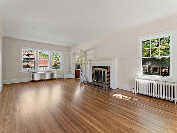 This home is spacious and sun-filled. The current owners have done their best to preserve the history and integrity of the home including the red brick steps leading to the front entryway with elegant French doors on either side.