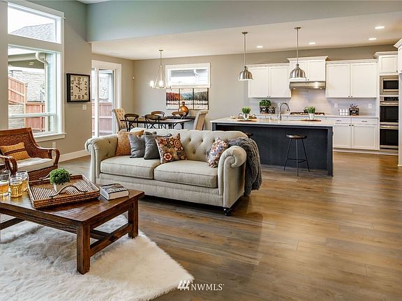 Quick Move -In Home | Free A/C | Rambler on a Greenbelt w/ 3car garage | The SENECA by GARRETTE CUSTOM HOMES- This is a brand new floorplan for GCH featuring 12 ft ceiling in the great room, 8ft tall doors, gourmet kitchen w/ dbl ovens, gas range and White cabinets w/ quartz countertops, tons of storage, Master suite is generous with tile walk-in shower & 6ft Soaking tub. . Deck is open to greenbelt and a fully landscaped lot. Make this home yours today!