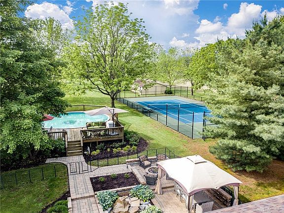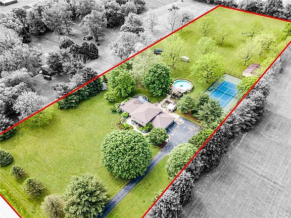 An incredible opportunity to own a truly special property! Five acres with a tennis court, a barn, two useful sheds and a chicken-run, an above-ground pool fully surrounded by a sun deck and so much more! Conveniently located in Spring Valley Township, minutes from Springboro, Centerville, Bellbrook and Xenia. The updated kitchen leads into a vaulted ceiling, glass enclosed conservatory which feels like the perfect place to relax. The professionally built paver patio creates an extension of the living and entertaining space, with fire pit, seating area and grill. The bedrooms are all good size, with three on the upper level and one in the lower level. The lower level entertaining space is highlighted by a gorgeous white brick fireplace with live edge mantle. The three full and one half bathrooms are all updated and show beautifully. The 3-car side-entry garage can be the garage you've always wanted as all other items could be kept in the barn! There's truly so much to love.