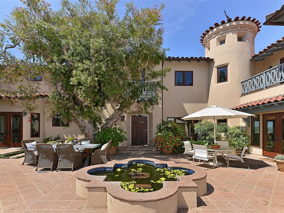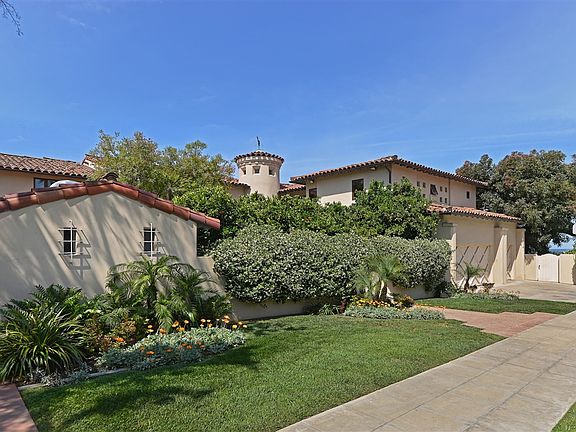 Absolutely awe-inspiring ocean, bay and downtown skyline views are yours to covet from this elegant Spanish estate, walled and gated providing an exceptional level of privacy, resting upon two parcels totaling approximately 30,000 square feet with a solar-heated pool, spa, cabana, and beautifully landscaped grounds (please see supplement).