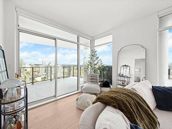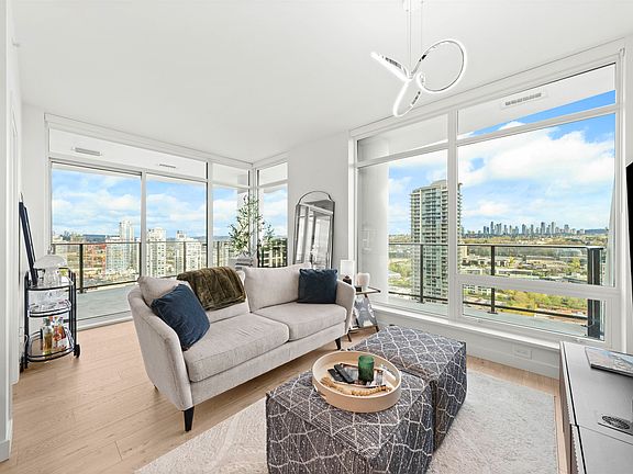 Welcome to Akimbo by Imani in the heart of Brentwood! This south-facing 2-bed 2-bath Corner unit offers 785 sqft of thoughtfully designed living space with an open-concept layout and breathtaking city views with extra space at balcony. Experience modern luxury with 9'ceilings, floor-to-ceiling windows, and kitchen equipped with premium appliances. Enjoy year-round comfort with individually controlled AC and heating. Amenities: gym, guest suite, party lounge, concierge service, and outdoor garden with BBQ area. Steps away from Brentwood Mall, Gilmore SkyTrain Station, Whole Foods, parks, and an exciting array of dining and shopping options. School catchment: Kitchener Elementary (3-min drive), Alpha Secondary (7-min drive), and BCIT (5-min drive).
