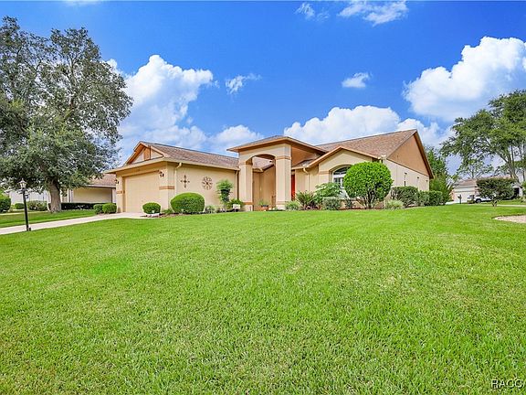 Welcome to this beautifully maintained 3-bedroom, 2-bathroom Tamarack floor plan home with a 2-car garage, perfectly situated on a desirable corner lot. From the moment you step inside, you'll appreciate the bright, open, and airy feel with high ceilings, crown molding, and gorgeous laminate wood flooring throughout the main living areas. The living room features a solar tube for natural light and ceiling fan for comfort, while the updated kitchen shines with granite countertops, ample cabinet space, and a sunny dining nook overlooking a peaceful garden. The Florida room is enclosed and accented with plantation shutters, an electric fireplace, and ceiling fans, offering the perfect spot to relax or entertain. Just beyond, enjoy the screened lanai with ceiling fan for year-round outdoor living. The split-bedroom layout ensures privacy for everyone. The spacious primary suite includes two large closets, plantation shutters, sliding glass doors to the Florida room, and access to a Jack and Jill-style bathroom featuring updated cabinetry, a newer toilet, shower, and ceiling fan. The second bedroom includes an extra-large walk-in closet. The third bedroom is steps from the guest bathroom and features an updated vanity with granite countertop. Practicality meets comfort in the laundry room, complete with solar tube, closet, and cabinetry, while the garage includes a workbench and dual exterior access doors for convenience. And there's more — this home is loaded with valuable upgrades! Whole-house generator powered by LP gas for peace of mind. Well-fed irrigation system to keep your lawn lush and your water bill low. New windows (2008) for energy efficiency. Roof replaced in 2016. HVAC system replaced in 2020. Timber Pines is an award winning, guard-gated, 55+, deed-restricted community offering a resort-style lifestyle: three 18-hole golf courses, a 9-hole pitch & putt, tennis, 12 pickleball courts, two community swimming pools, country club restaurant and bar, fitness center, billiards, performing arts, woodworking and over 100 social clubs and activities. This home blends comfort, style, and function in every detail — all set in a beautifully maintained community.