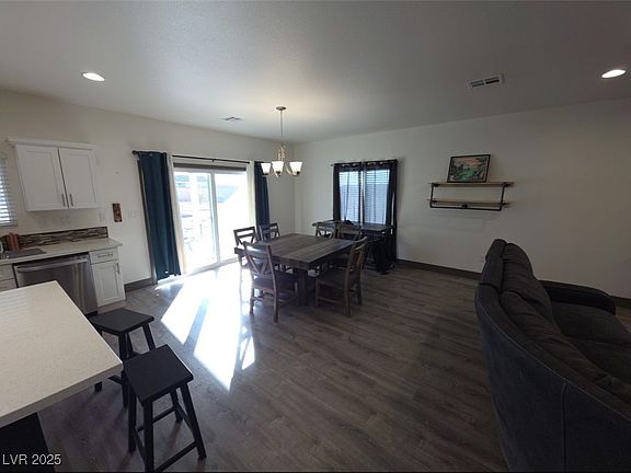 Beautiful single story home Built in the highly desirable winery area of Pahrump. 1670 sq ft home on 1/2 acre. This 3 bedroom, 2 bath home features a large 3 car garage, covered back patio, 2 sinks in the primary bathroom custom tile shower in the master bath large kitchen island pendant lighting & undermount kitchen sink, quartz countertops, tile backsplash, LVP flooring, Stainless steel appliance, ceiling fans in living room and bedrooms. Ask me how to assume the current rate of 2.375!!!!