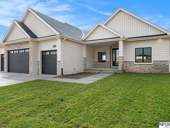 SSDL. New Ranch in Elkhorn's Blue Sage Creek! This new 5-bed, 4-bath ranch features everything you are looking for. Open concept floor plan featuring great room with fireplace, custom vaulted ceiling, & access to covered deck. Large kitchen has island, WI pantry, & dinette. Primary suite has WI shower, soaker tub, dual sinks, WI closet, & lots of natural light. Finished walk-out basement features a rec room with wet bar & media room, 2 additional bedrooms, office/flex room, & full bath. Four-car garage. Photos are from previous build.