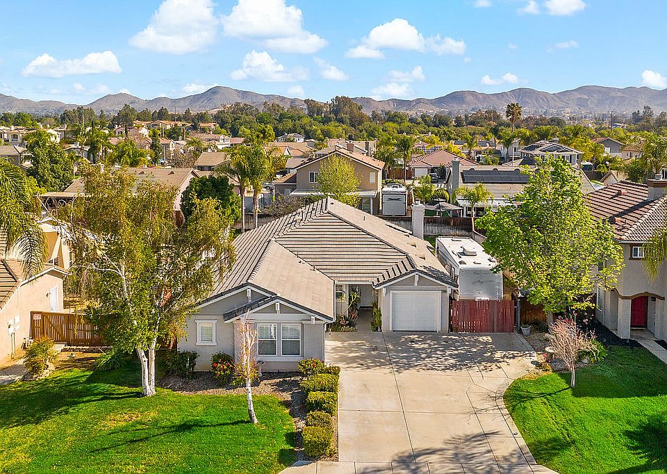 Beautiful home with RV parking available in the community of Wildomar! This home is a joy of detail and care; upon entering the home you are directed right into a wonderful layout that is accented with a formal living room, fireplace, tall ceilings, recessed lighting and tile flooring throughout. The kitchen offers white cabinets creating lots of storage space, granite countertops and a breakfast counter with seating for three. Moving outside you will find a large peaceful backyard which makes for a perfect entertaining area or relax under the covered patio which offers a ceiling fan. This home also features a 3 car garage and plantation shutters throughout. Close to shopping, restaurants and schools this home won't last long, so make it yours!
