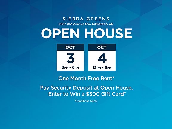 - Special offer! One Month Free Rent - *Promotion applies to new fixed term leases signed by October 31, 2025. Conditions apply. Please see us for details.