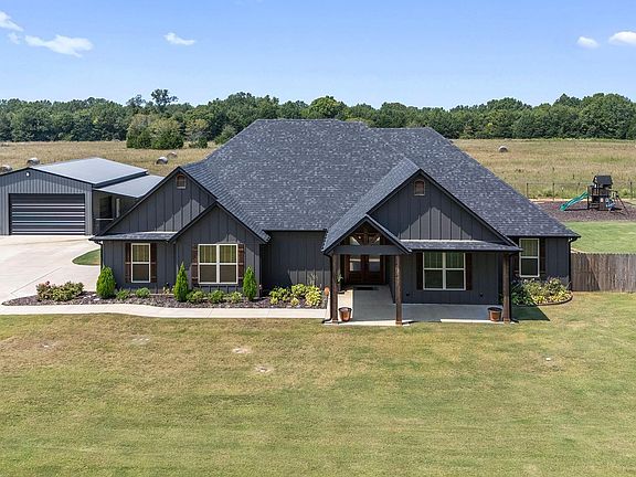 Custom-Built Luxury Meets Everyday Comfort in Bullard ISD. Experience the best of East Texas living in this thoughtfully designed 4-bedroom, 2.5-bath retreat located in the highly sought-after Bullard ISD. Sunlight fills the refined, open-concept layout that makes entertaining a joy, where the gourmet kitchen shines with granite countertops, a stylish tile backsplash, an expansive island, and a welcoming breakfast bar. A chef’s dream walk-in pantry offers exceptional storage and convenience. The split primary suite is a private sanctuary, featuring a spa-inspired bath with a freestanding soaking tub, oversized walk-in shower, dual vanities, and a generous walk-through closet connected directly to the well-planned utility room and nearby half bath. Step outside to your own resort-style oasis: a spacious covered patio ideal for gatherings, a sparkling pool and relaxing hot tub, a cozy fire pit for starlit evenings, and a versatile area perfect for a playground or garden. A charming front porch with warm-stained ceilings and cedar posts creates an inviting first impression, while the fenced 0.835-acre lot provides both space and privacy. Completing this exceptional property is a 30x40 powered shop with electricity, a half bath with water heater, Two roll-up doors (1 automatic), One walk-through door, and plenty of room for an RV or boat on the side. Plus, a whole-home Generac generator ensures peace of mind with reliable power for the residence, pool, and spa. This home is where comfort, function, and luxury come together ~ schedule your private tour today!
