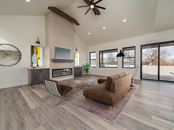 Stately home boasting a masterful design in a coveted community that sits at the base of the Colorado National Monument with an exterior facade that grabs street-side attention! This new construction home by Award Winning Builder, TreyTyn Homes, features a custom feel that checks off a wish list box for everyone! A thoughtfully designed floor plan with a split-bedroom layout offers primary privacy and entertaining space to enjoy the best of both worlds! As you enter through the grand front entrance, there lies an office/4th bedroom for easy guest access with 3/4 bath featuring oversized walk-in shower with bench seating and custom tile accents! Further steps will usher you into the expansive living area with cozy & ambient electric fireplace and rows of oversized windows that floor in natural sunlight! Premium kitchen to delight every home chef & mixologist between the Casa Bella Quartz counters, premium shaker cabinetry, tile backsplash and top-line stainless appliance package! Butler's pantry with rows of shelving and countertop space for meal prep, overflow storage and small appliance placement! Adjacent dining area is large enough for those large holiday family gatherings and convenient enough for the quick weeknight meal! Primary suite on east wing of the home features HUMONGOUS walk-in closet and en-suite spa-like bath with dual vanities, oversized walk-in shower and private lavatory closet. Pass-through access from walk-in closet to laundry area for added convenience and ease-of-operation! West wing of the home features two additional spacious bedrooms that share full bathroom with the same upgraded cabinets, counters and unique tile accents throughout! Expansive backyard space to enjoy the picturesque Grand Valley views and enjoy in the mild climate on the large covered patio. RV parking space on lot; no need to store your recreation vehicle elsewhere! Builder provided full vinyl fencing and front landscaping for added value and move-in ready feature! Full tapestry of hiking and biking trails nearby and just a short distance to Redlands Mesa Golf Course; the most perfect and serene community for the elevated outdoor enthusiast to reside!