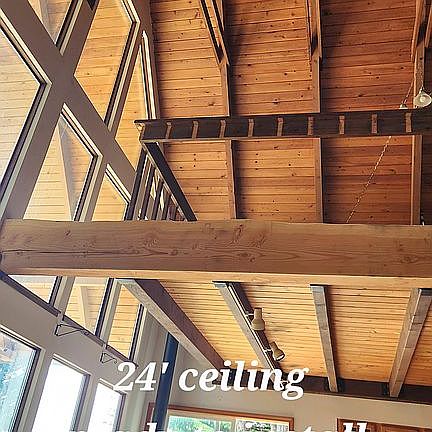 2 story chalet with 26 foot vaulted ceilings. Nestled in the Columbia River Gorge, with Windows on the south side overlooking the Oregon Mountains. We drive through Beacon Rock State Park to get here. We are in zone "forest 20". Part of the acreage borders DNR land. The downstairs bedrooms were set up as a working adult care home. It is a nice little apartment with their own propane heat and walk in shower. Excellent calm atmosphere for people needing care and a place to enjoy life while watching the wildlife and experiencing the seasons.