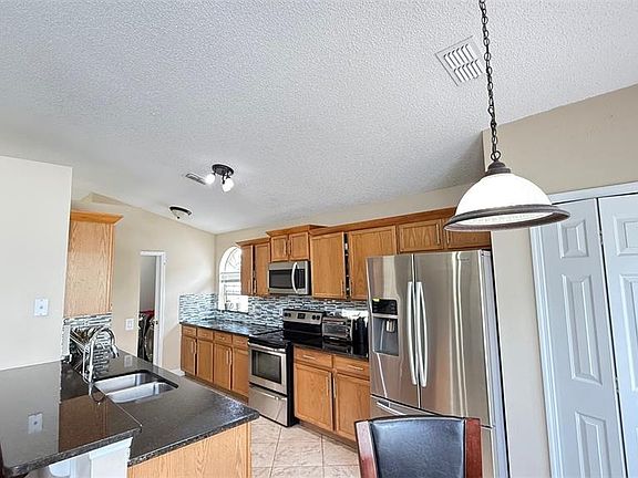 Great single family home with 3 bedrooms 2 baths, garage converted into additional spacious room. Fantastic open kitchen with granite counter tops, back splash, elegant wood cabinets and eating area. Ceiling fans throughout the house provide additional cooling opportunity. The bathrooms also have granite counter tops, master bedroom has dual sinks, garden tub, and spacious walk in closet. Ceramic tiles throughout the home, and beautiful screened in pool and fenced yard. This wonder home is near schools, shopping plazas, and short drive to major roads and turnpike. Come see this wonderful home; seller is motivated to sell fast.