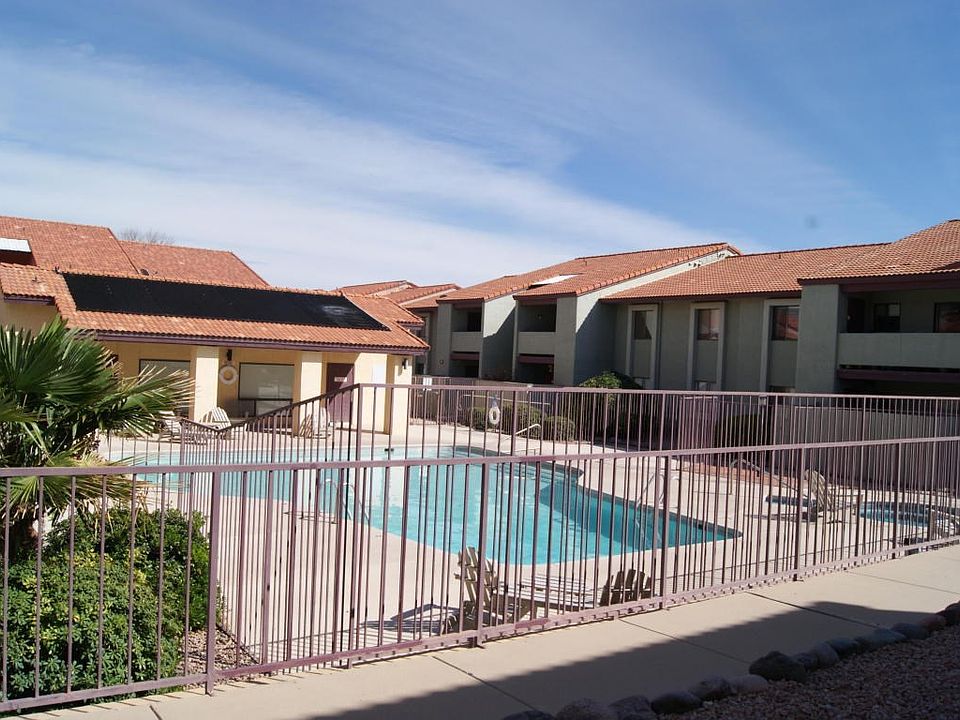 BEAUTIFUL TURN-KEY FULLY TILED 2 BED, 2 BATH GROUND FLOOR N-FACING CONDO W/ WALLED,COVERED PATIO IN SUPER CONVENIENT IN-TOWN NE LOCATION W/COMMUNITY POOL & SPA. INTERIOR FRESHLY PAINTED, PROFESSIONALLY CLEANED. DUAL PANE WINDOWS, GENEROUS MASTER WALK-IN CLOSET. BLACK KITCHEN APPLIANCES,GE CERAMIC/GLASS TOP RANGE 2015,SIDE BY SIDE FRIDGE/FREEZER W/WATER, ICE DISPENSER 10/17, DISHWASHER 1/18,BUILT IN MICROWAVE FALL/16. NEW DISPOSAL 2/18.WATER HEATER 2012.MAPLE CABINETS, WINDOW ABOVE KITCHEN SINK W/PLANT SILL. STACKED WASHER & DRYER.SECURITY DOOR.HOA COVERS:WATER,TRASH,EXTERIOR TERMITE TREATMENT,EXTERIOR BUILDING & ROOF,GROUNDS, POOL,SPA,COMMUNITY ROADS, PARKING,SEWER LINES. 1 COVERED + 1 UNCOVERED ALLOCATED PARKING SPACES. CURRENT OWNERS HAVE BEEN WINTER VISITORS ONLY.NO POLYBUTYLENE PIPE