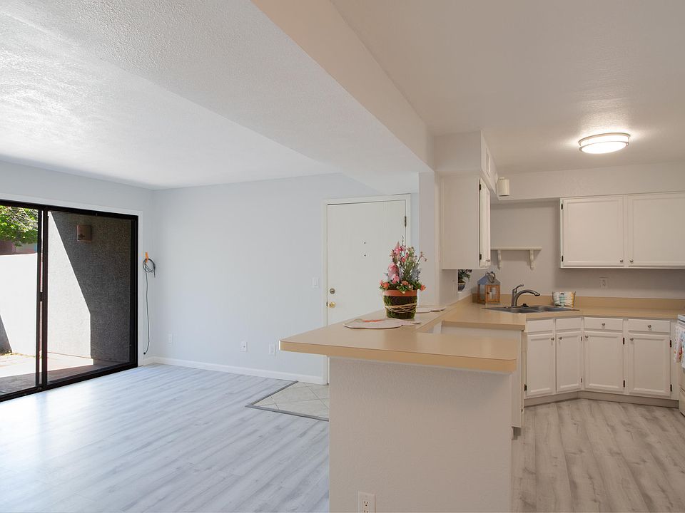 Beautifully remodeled ground floor Condo!! Freshly painted 2 tone gray interior with gray vinyl plank floors to compliment the walls. Popcorn ceilings were removed & the white ceiling & new white trim bring a gorgeous contrast to the interior walls and floor. New tiled shower and fixtures, freshly painted white vanity & white marbled counter top installed in the Owner's suite. Vanity in hall bath freshly painted white with new white marbled vanity top as well. Kitchen cabinets freshly painted white with new modern LED lighting. Sliding glass doors off the Great Room to a private patio. This condo comes with 1 covered parking and 1 uncovered parking spot, stackable washer/dryer, newer Hot water heater. Newer HVAC which has been on a preventative maintenance plan. HOA includes water, sewer, and trash.