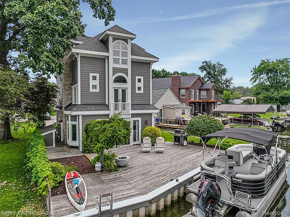 ALL SPORTS CASS LAKE. 3 bedroom 4 full bathroom move-in ready home on 40 ft of frontage. Generous kitchen w water views & miles of counters & storage, stainless steel appliances, granite countertops. Travertine stone stone floors. Fireplace w stone surround. Built in wood cabinets/shelves w custom lighting. Primary suite BR w vaulted ceiling, French door balcony to lake & incredible sunset views. NEW primary bath w Carrera marble and Italian tile, Kohler vanity. Custom euro glass shower w Kohler Purist, brush gold hardware. The 3rd floor family/billiard/pub room overlooks spectacular lake views. Perfect space to entertain guests or relax. Second floor laundry room w new appliances & slate floors. All 3 bedrooms are ensuites w large closets. 3rd floor exercise room overlooks lake. Impressive curb appeal w covered porch. Enjoy lake life living w access to major roads, shopping & dining spots. Minutes to Birmingham & Golf. Walkable to bars & restaurants of Keego Harbor and Sylvan Lake. Only 1/2 hr to Downtown Detroit. West Bloomfield schools. Mostly Andersen casement windows throughout. NEW 2024 on demand H20, 2024 8K in Shade Store window treatments (w remote) New carpet & paint in bedrooms 2025. Newer Washer and Dryer 2022. 2025. Outdoor storage shed. Exclusions apply BATVAI. Agent related to seller. Taxes currently non homesteaded.