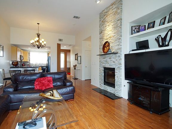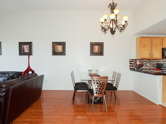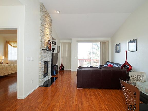 Rare Penthouse with attached garage in gated community! Popular townhouse style condo with upgraded wood flooring and fresh neutral paint * Open layout includes large family room with vaulted ceilings, gas fireplace and large balcony overlooking courtyard* upgraded kitchen with granite tile and backsplash* Large private master suite with walk in closet, second bedroom with full bath, and a laundry room - washer/dryer included! Parking includes one car attached garage. Right across form community pool. Close to shopping, parks, light rail and highway. Showroom condition!